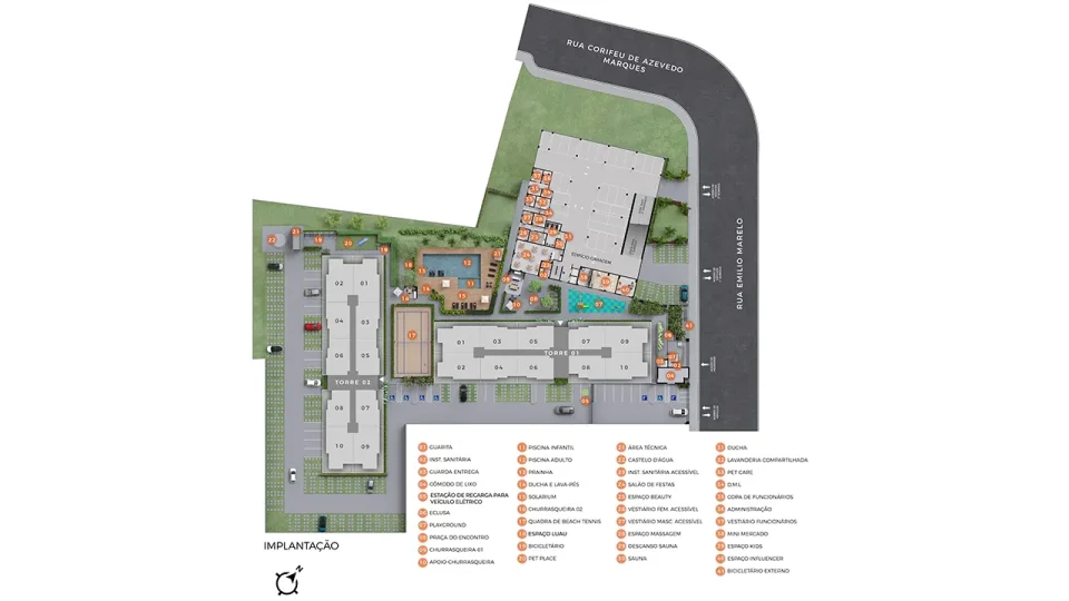 405 vagas de veículos ao todo, incluindo vagas para visitantes