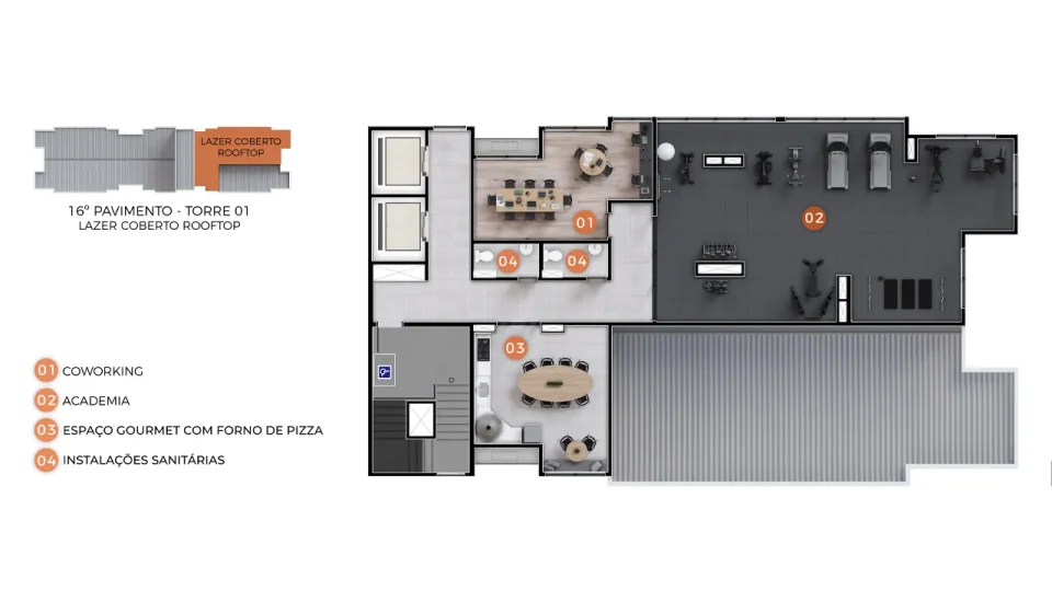 Rooftop de lazer localizado no 16º pavimento da Torre 1