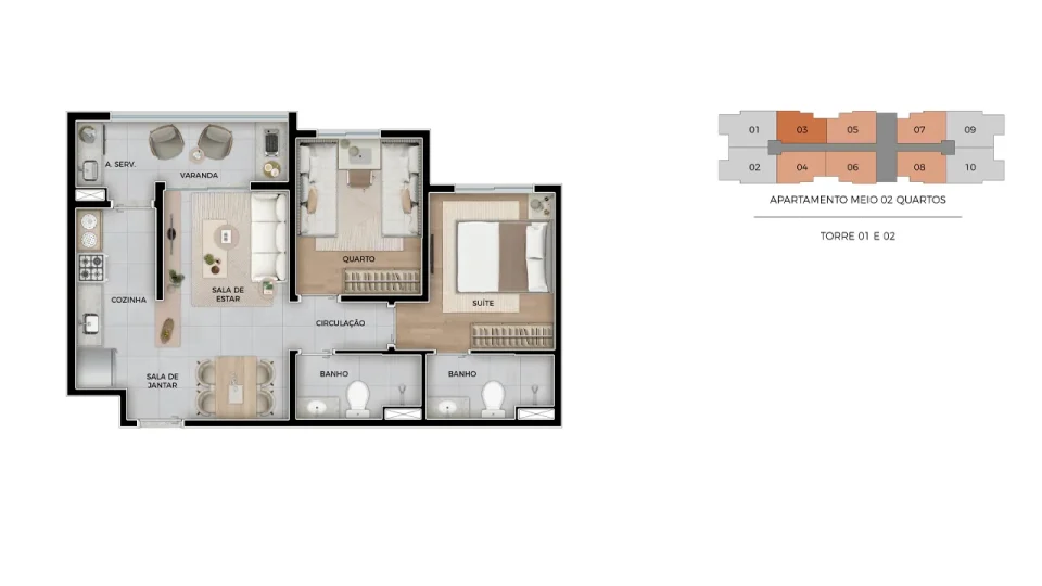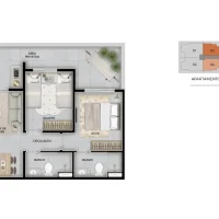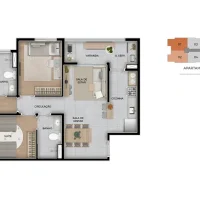 Tipo 2 dorms com suíte e varanda gourmet | 53,62m² a 54,24m²
