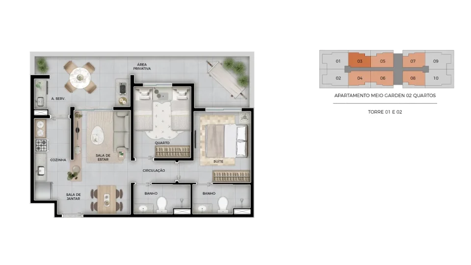 Garden 2 dorms com suíte | 65,90m² a 66,64m²