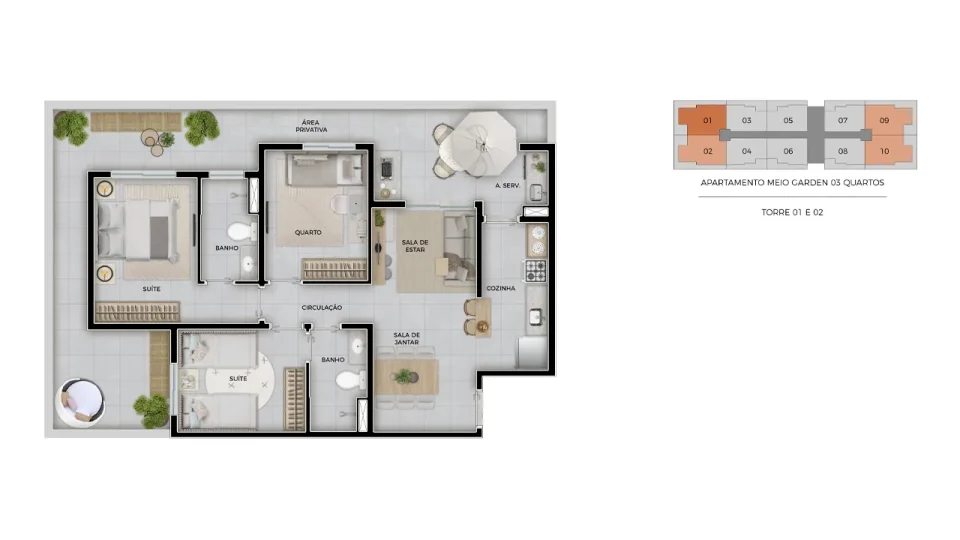 Garden 3 dorms com suíte | 91,79m²