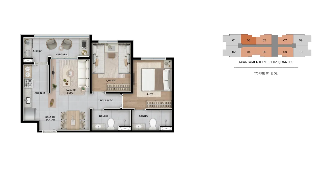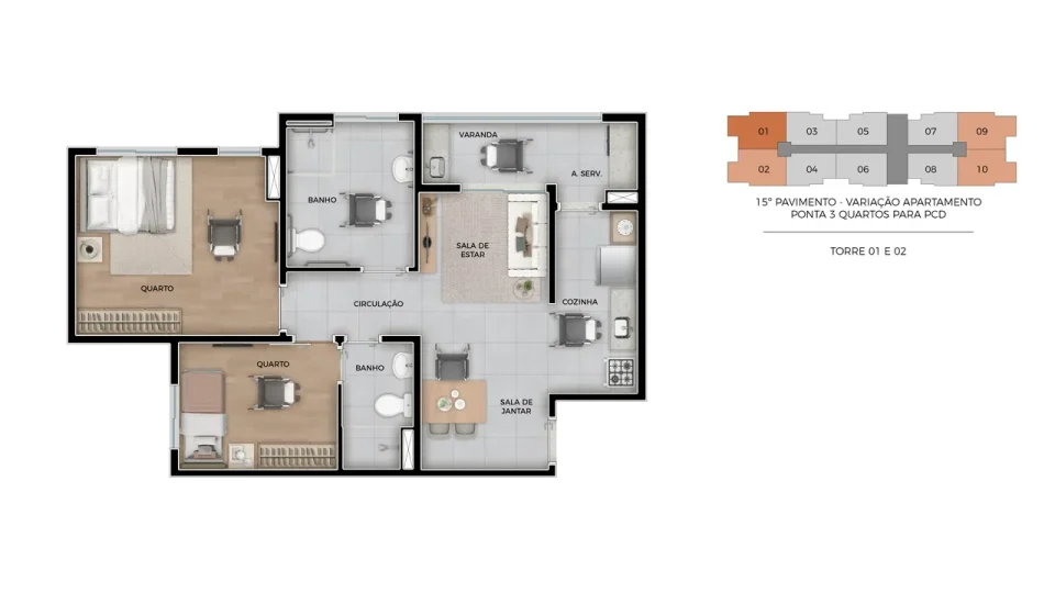 Tipo PCD 2 dorms com suíte e varanda gourmet | 66,82m²